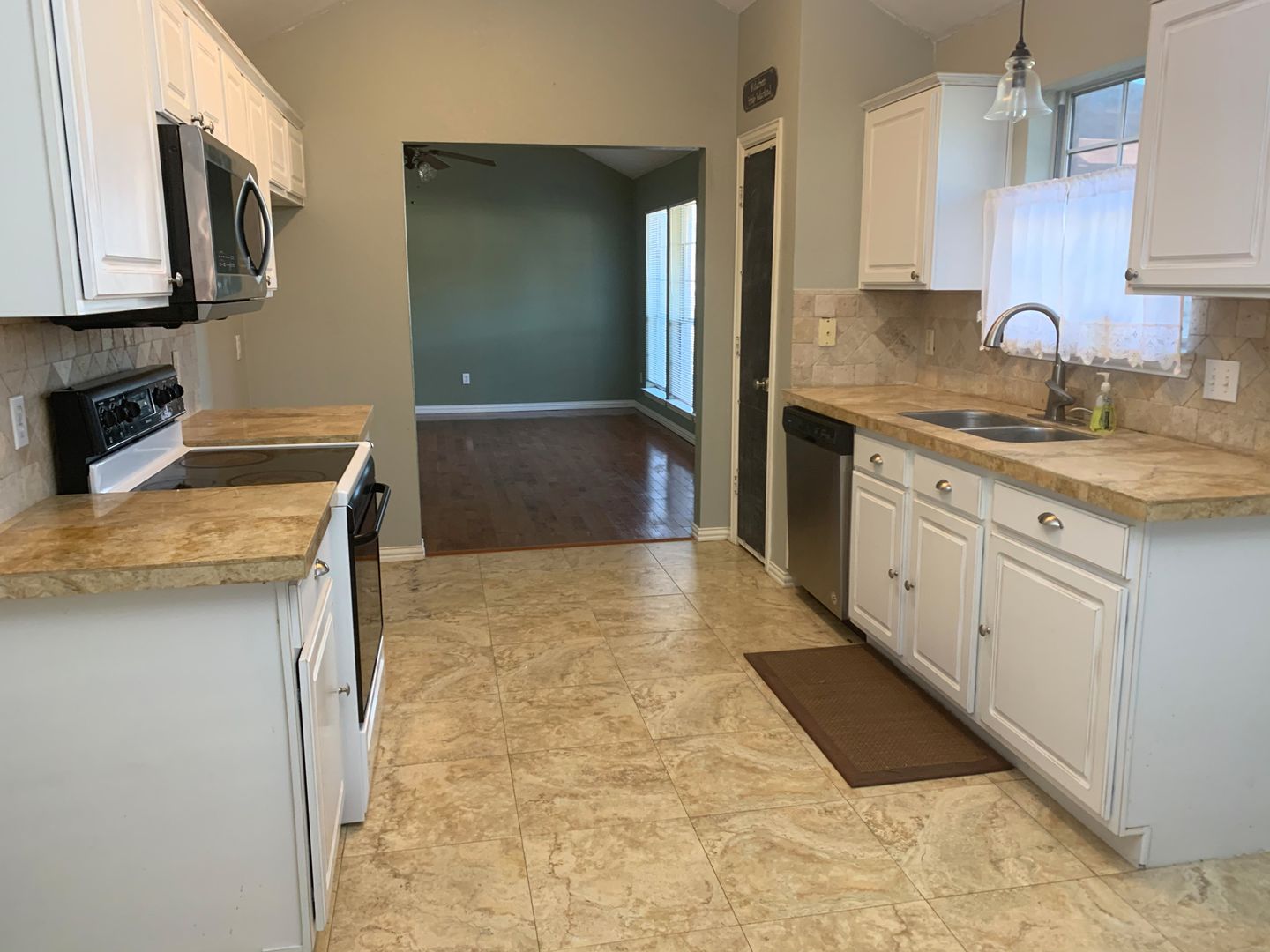 This single story home is a 3 bed 2 bath on a corner lot. There is no carpet in this home and every room has a ceiling fan. The kitchen has granite countertops and lots of natural light. The living room has a nice fireplace, decorative niches, and lots of windows. The back yard has a pergola for extra entertaining space plus a huge backyard with a wooden deck and storage shed. The 3 bedrooms are all nice sized with plenty of storage in each room.