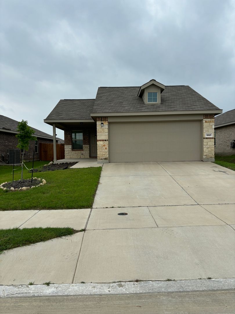 Welcome to 5821 Brahma Trail in Fort Worth Texas. This home is a single story open concept floorplan. The kitchen is in the heart of the home and has alol appliances, including fridge, microwave and full-size washer dryer. The primary bedroom is tucked in the back of the property for privacy and features, en suite bathroom and huge walk-in closet. The secondary bedrooms are both nice size and has a full bathroom in between. All appliances included make this property stand out as a good fit moving from apartment life to first time in a house life!