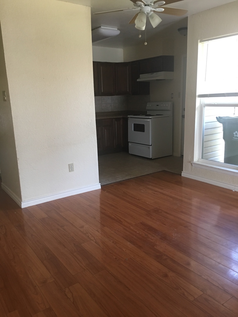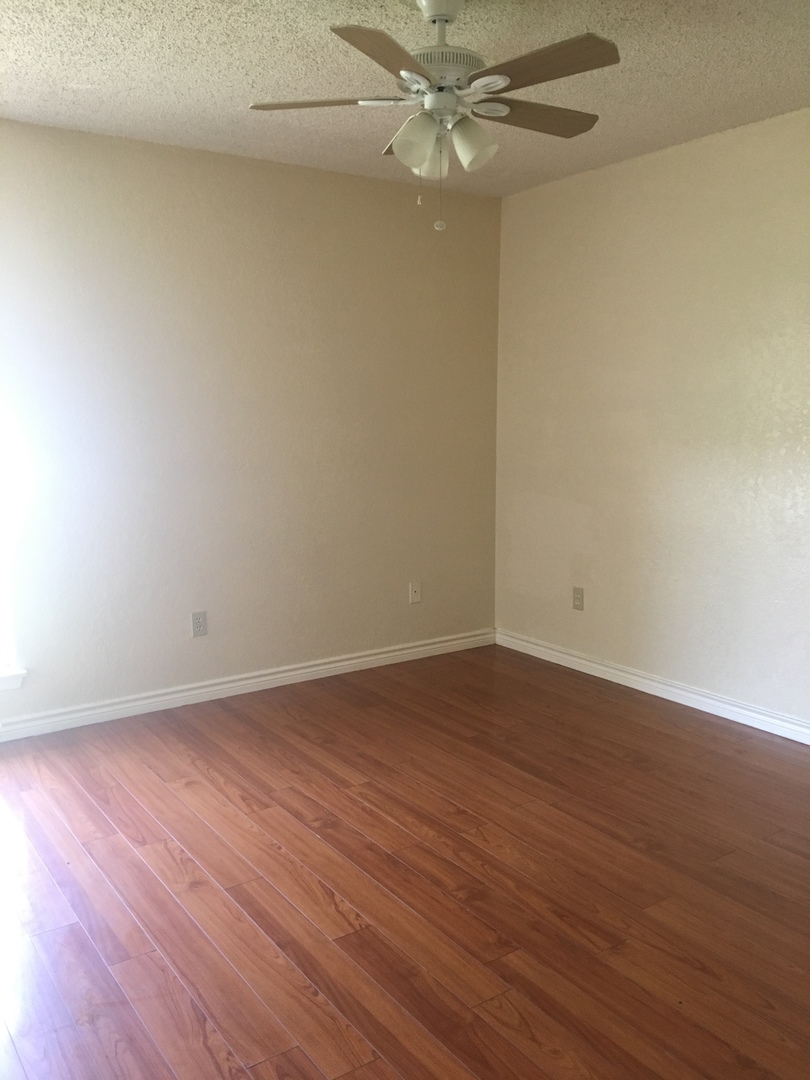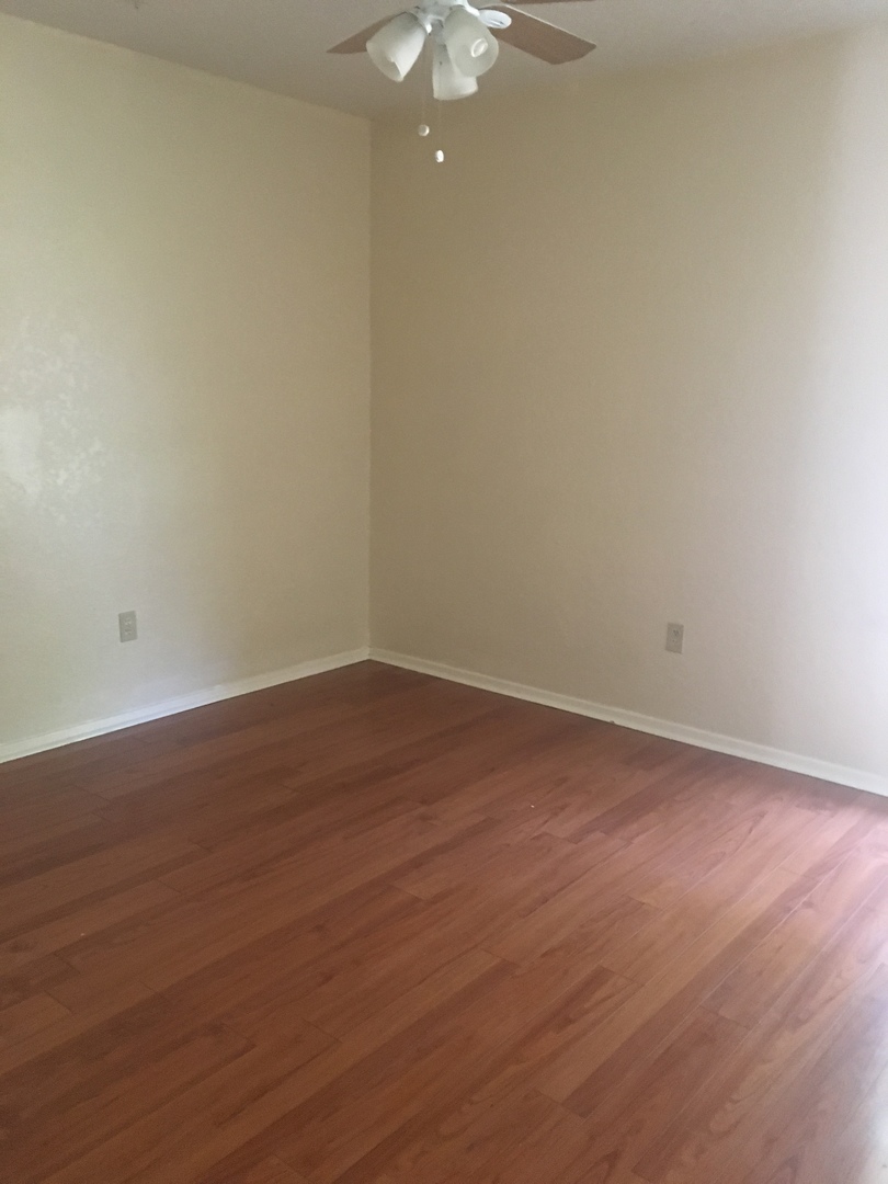 This 3 bedroom property feels very spacious with large living room with fireplace and vaulted ceiling which opens to the dining room and kitchen. The bedrooms are split with the master suite tucked away with big closet and bathroom. The other bathroom has shower and full size washer dryer connections. There is a cute fenced in backyard perfect for a small dog.